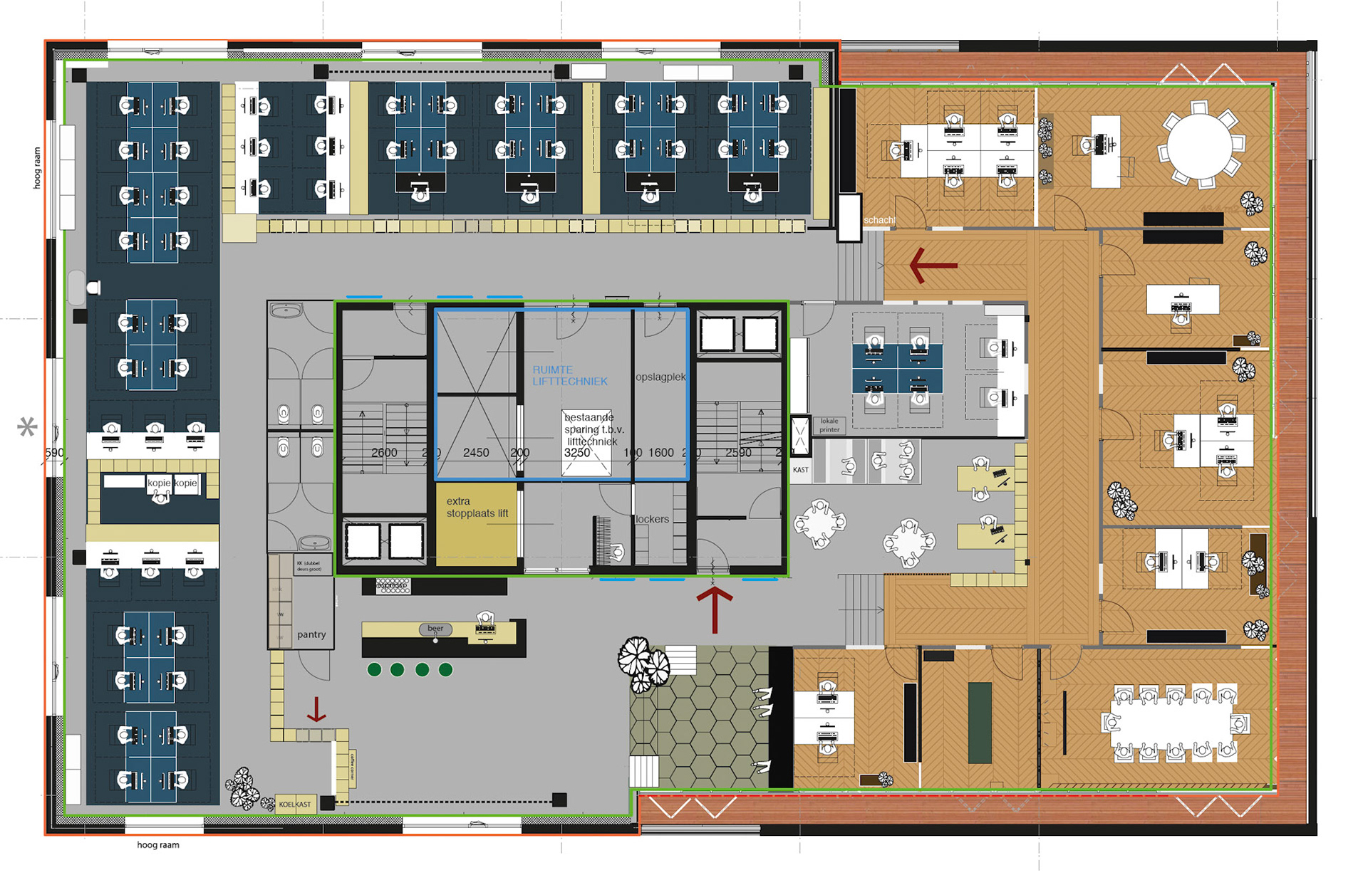 Complete project. Converting the 13th floor of the former Parool building into the headquarters office for The Student Hotel (650m2) From nothing to the finishing touches.